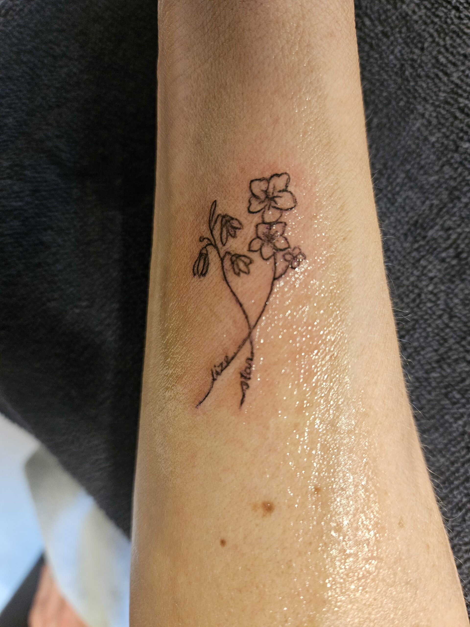 Een fine line tattoo is een minimalistische tatoeage die gekenmerkt wordt door zeer dunne, precieze lijnen en een subtiele uitstraling, vaak met zwarte inkt en gedetailleerde ontwerpen zoals bloemen, namen of geometrische vormen.